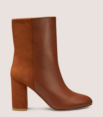 The 5050 STRUT BLOCK BOOTIE draws upon our iconic 5050 mixed-material boot design by way of a contrasting half-leather, half-suede construction. The resulting look is timeless — with a twist. Crafted by SW artisans in Spain, it is set on an 85-mm block heel that's just as comfortable as it is sleek.