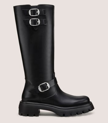 The EMERSON MOTO BOOT is crafted with a structured tube silhouette and a modern, rugged square toe. This knee-high boot is set on a lug sole complete with a wearable 50-mm block heel and it features adjustable buckle hardware accents that infuse effortless edge into the look.