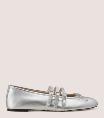 The CELESTE MARY JANE BALLET offers an effortlessly glam spin on the most-wanted ballet flat silhouette. Featuring a unique triple-strap design detailed with geometric crystal- and pearl-embellished buckles, this made-in-Spain style stands to add polish to your everyday looks.