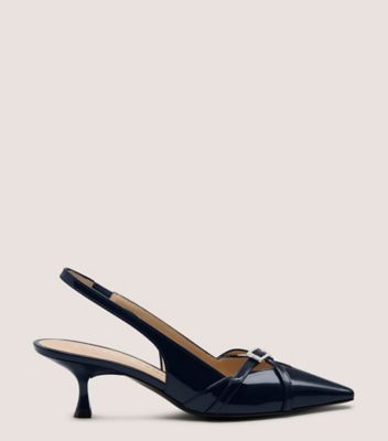 The GEORGIE SLINGBACK 50 stands out with sleek, sharp lines, from its precisely sculpted 50-mm kitten heel to its pointed toe. This design features a peekaboo cutout detail and a vamp strap complete with a polished angular buckle. Its slingback strap is designed with an elastic insert for a secure fit.