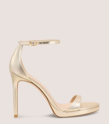 The NUDIST PLATFORM delivers a bold update on our iconic NUDIST sandal. It features our innovated NUDIST construction developed for even more comfort than ever before, including: an arched, higher-coverage toe strap; a curved back counter that reveals more of the foot; and a modernized round toe. Crafted by SW artisans in Spain, this platform sandal is set on a lightweight 100-mm stiletto heel and finished with a cushioned insole. The result is a red carpet-ready design that is just as sophisticated as it is wearable.