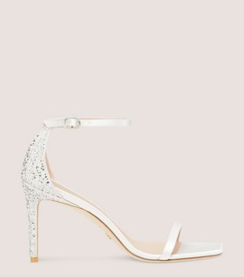 The NUDISTCURVE ROYALE PEARL 85 SANDAL in a word: Glamorous. This striking iteration of our iconic two-strap NUDIST is adorned with approximately 2,000 crystal and pearl embellishments. Precisely constructed by our artisans in Spain, it features an 85-mm stiletto heel set on a slight curve for maximum support and a sleek toe strap that's strategically placed to prevent the foot from sliding forward.