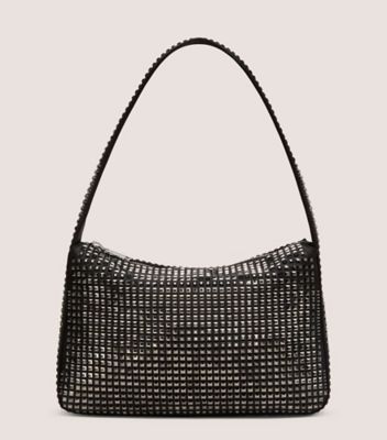 The RADIANT SHOULDER BAG pairs a minimalist, '90s-inspired silhouette with sparkling radiant-cut crystals. It is crafted in Italy with an interior side pocket and secures with a zipper to stow your belongings safely.
