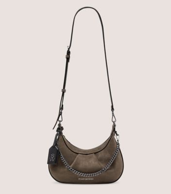 The STELLAR CRESCENT BAG features luxurious details that truly set it apart. Crafted by our artisans in Italy, it is defined by a curved crescent silhouette and a softly gathered design that gives it its distinct shape. It is finished with a detachable chain strap along with a sleek shoulder strap that can be adjusted to your ideal drop.