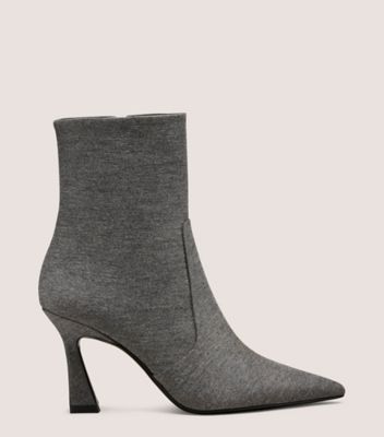 The VINNIE ZIP BOOTIE 85, defined by its sleek, sharp sensibility, is crafted with a sculptural 85-mm heel that's strategically placed to offer extra support. It is finished with a squared-off back counter, a pointed toe and a side zipper.