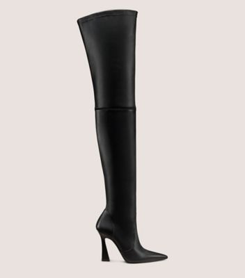 La BOTTE ULTRAVINNIE 100 est un exploit de savoir-faire, alliant des lignes architecturales solides à notre emblématique fabrication extensible au-dessus du genou. Elle est conçue avec un bout pointu élégant, un contrefort carré et un talon angulaire sculptural de 100 mm placé stratégiquement pour offrir un soutien supplémentaire.
