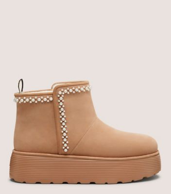 La BOTTINE À PLATEFORME ET À PERLES NELLIE combine des ornements de perles élégants à une doublure en rason luxueuse et une silhouette décontractée de bottine. Sa plateforme de 40 mm lui donne un rehaussement élégant tout en restant naturellement confortable.